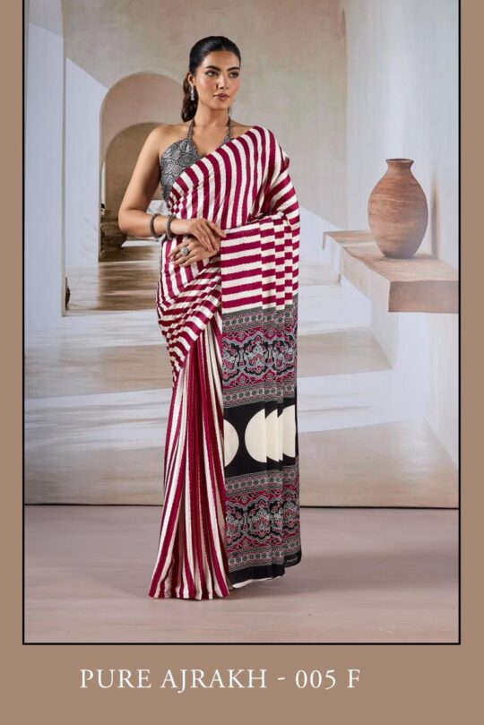 Rajtex prism saree presenting new modal Satin Ajrakh print silk collection wholesaler and manufacturer in Surat