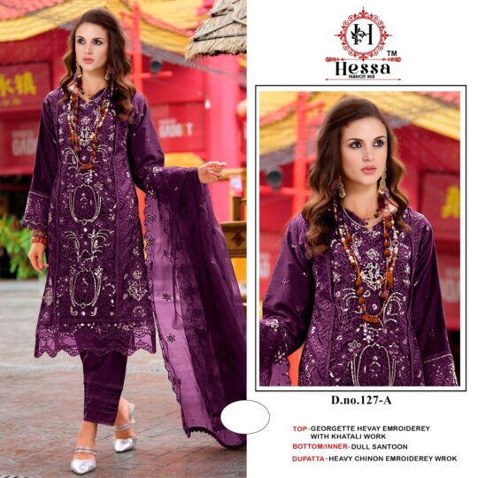 Hessa d127 present new launching heavy Georgette embroidery hand work collection wholesaler and manufacturer in Surat