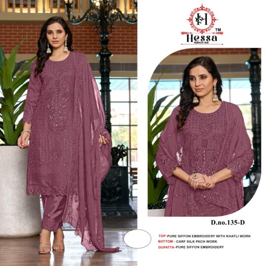 Hessa d135 Present new launching pure chiffon embroidery cut work collection wholesaler and manufacturer in Surat
