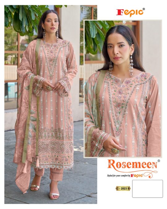 Fepic Rosemeen present new launching organza embroidery work collection wholesaler and manufacturer in Surat