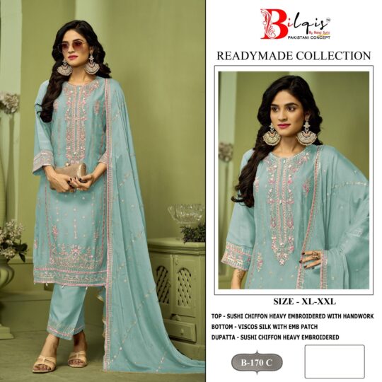 Bilqis b170 present new launching heavy Chiffon embroidery work collection wholesaler and manufacturer in Surat