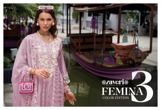 Zaveri femina 3 present new launching soft organza with embroidery work collection wholesaler and manufacturer in Surat