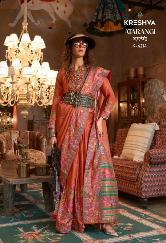 Kreshva atrangi saree presenting new p v silk print collection wholesaler and manufacturer in Surat