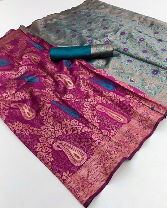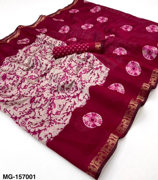 Kreshva rasberry saree presenting can Crape crush jacquard Weaving border collection wholesaler and manufacturer in Surat