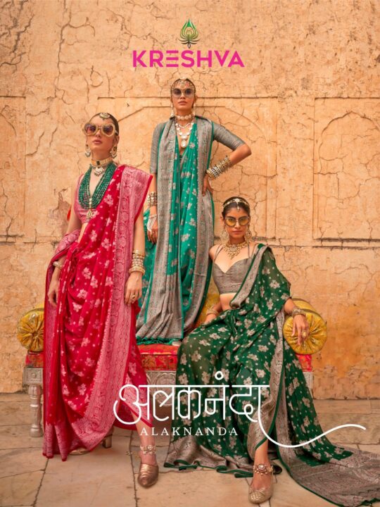 Kreshva Alaknanda saree presenting new Georgette with weaving butta border collection wholesaler and manufacturer in Surat