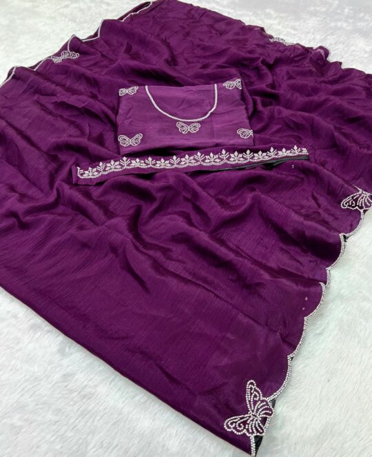 MC brand butterfly saree presenting new launching chinon with work collection wholesaler and manufacturer in Surat