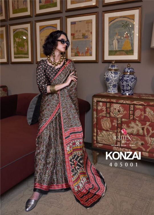 Rajtex konzai saree presenting new patola print crepe collection wholesaler and manufacturer in Surat