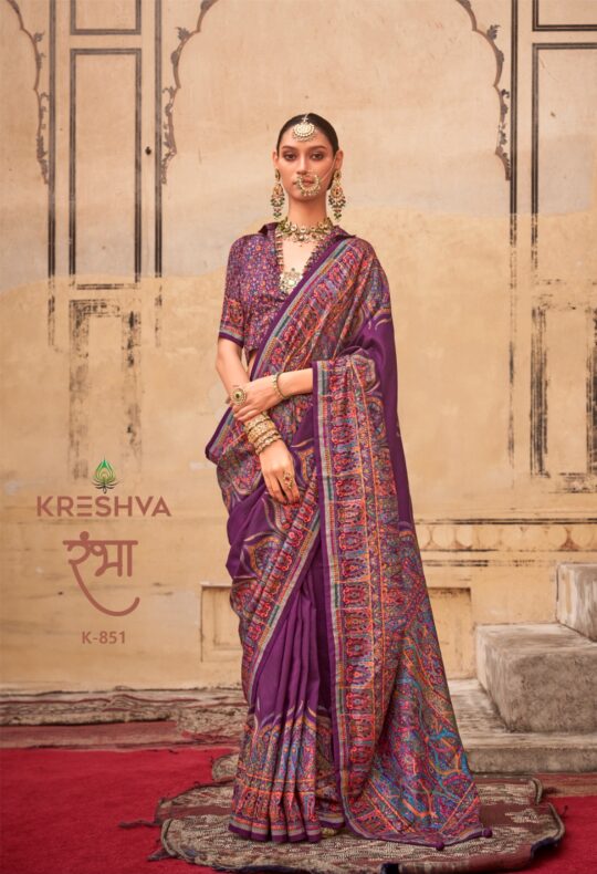 Kreshva rambhaa saree presenting new p v silk print collection wholesaler and manufacturer in Surat