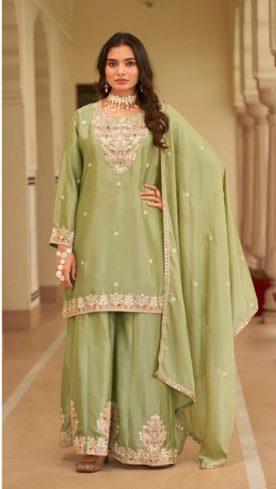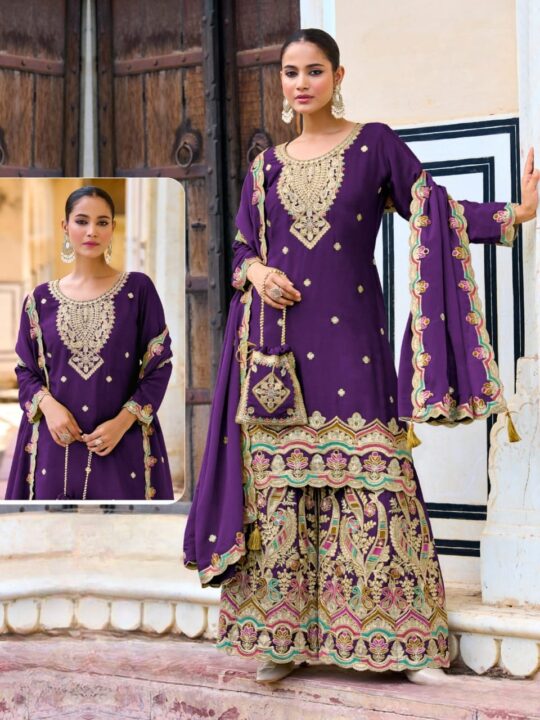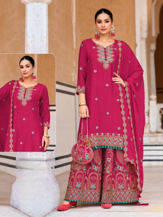MC brand D15031 present new launching Chinon silk with embroidery work collection wholesaler and manufacturer in Surat