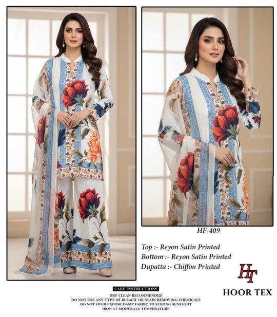 Hoor tex hf 409 Present new launching rayon satin print collection wholesaler and manufacturer in Surat