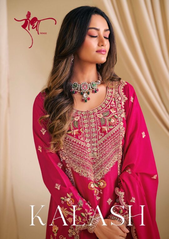 Radha trendz kalash present new launching heavy chinon with embroidery work collection wholesaler and manufacturer in Surat
